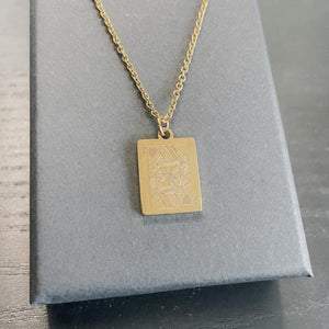 Wear this stunning Queen of Hearts necklace as a reminder that you are strong, you are loved, and you are worthy of all things good in the world. Handmade with love in California, this stylish, minimalist necklace features a lightly engraved Queen of Hearts designed pendant, a dainty chain, and comes beautifully packaged and ready for gift giving.