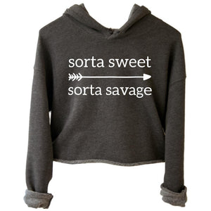Soft, stylish, and oh so cozy! This fresh, forward take on the ultra hoodie features a raw-edge hem, on-trend dropped shoulder silhouette and a flattering cropped fit. Made from super soft poly cotton brushed fleece, this dynamic wardrobe essential will look super cute with your favorite jeans or high waist leggings for any vibe.